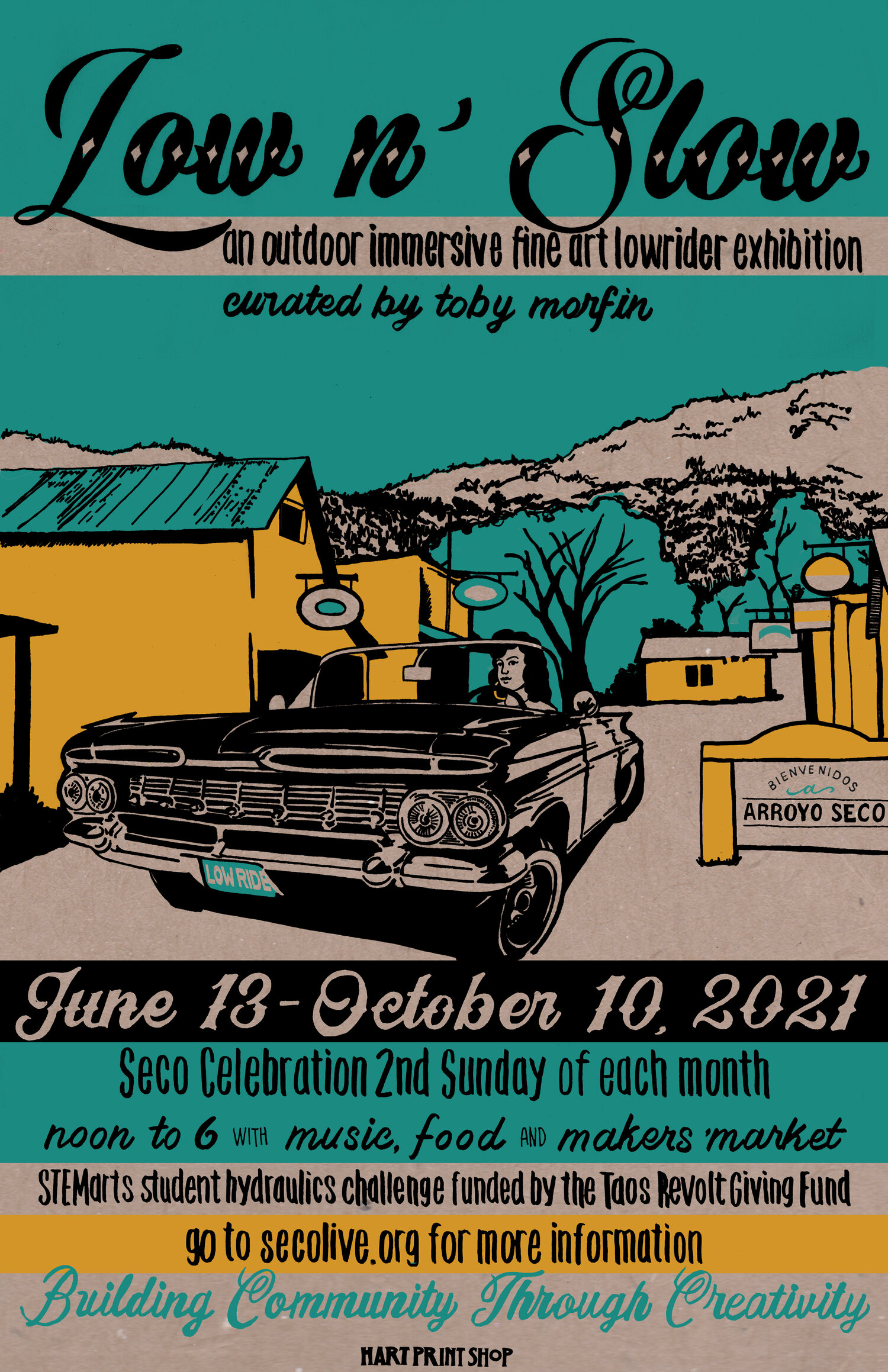 Low ‘N Slow will offer an immersive outdoor experience for art lovers of all ages providing a multi sensory tour through the world of lowrider arts and culture in Northern New Mexico. This safe and socially distant exhibition takes visitors through every aspect of lowrider culture from a 101 guide to hydraulics and pinstriping and tattoo classes to lowrider movie cult classics and interactive community gathering experiences.